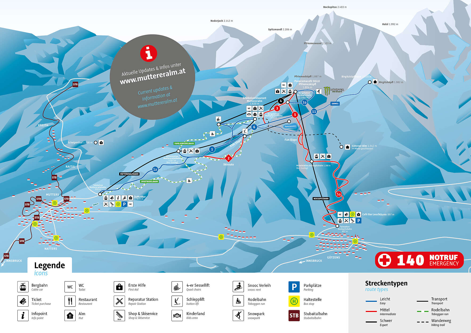Nasze pierwsze miejsce narciarskie to Muttereralm. Zima na Muttereralm to miejsce dla wszystkich miłośników śniegu i sportów zimowych. Trasy są o zróżnicowanym stopniu trudności zarówno początkujący, jak i doświadczeni narciarze i snowboardziści znajdą warunki do jazdy. Niebieską trasą można zjechać od góry na sam dół stoku. Sa również czerwone o umiarkowanym stopniu trudności. Niestety w tym roku trasy nie były naszym zdaniem zbyt dobrze przygotowane. Wprawdzie w nocy padał śnieg, ale rano nie było widać żeby trasy były ratrakowane, co niestety wpływało na całodzienną jazdę. Nasza ocena to 6/10. Plus za smaczną restauracje u góry.